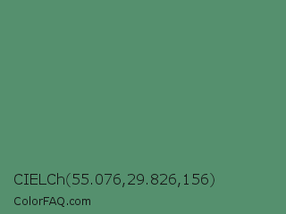 CIELCh 55.076,29.826,156 Color is a normal green color and the nearest color is Wintergreen Dream #56887d. Hex code #55906e and RGB value is rgb(85,144,110). In RGB color space, this color is composed of 33% red, 56% green, 43% blue, In CMYK color space, this color is composed of 41% cyan, 0% magenta, 24% yellow , 44% black , In HSL color space, this color has a hue angle of 145° , 26% saturation and 45% lightness.