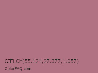 CIELCh 55.121,27.377,1.057 Color is a normal rose color and the nearest color is Turkish Rose #b57281. Hex code #b17284 and RGB value is rgb(177,114,132). In RGB color space, this color is composed of 69% red, 45% green, 52% blue, In CMYK color space, this color is composed of 0% cyan, 36% magenta, 25% yellow , 31% black , In HSL color space, this color has a hue angle of 343° , 29% saturation and 57% lightness.