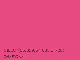 CIELCh 55.359,64.031,3.726 Color is a normal rose color and the nearest color is Dark Pink #e75480. Hex code #e64a80 and RGB value is rgb(230,74,128). In RGB color space, this color is composed of 90% red, 29% green, 50% blue, In CMYK color space, this color is composed of 0% cyan, 68% magenta, 44% yellow , 10% black , In HSL color space, this color has a hue angle of 339° , 76% saturation and 60% lightness.