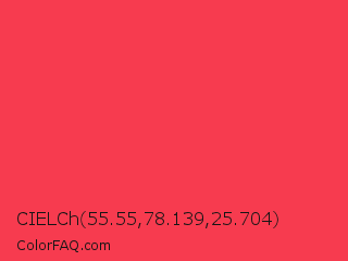 CIELCh 55.55,78.139,25.704 Color is a normal red color and the nearest color is Red Salsa #fd3a4a. Hex code #f73b4f and RGB value is rgb(247,59,79). In RGB color space, this color is composed of 97% red, 23% green, 31% blue, In CMYK color space, this color is composed of 0% cyan, 76% magenta, 68% yellow , 3% black , In HSL color space, this color has a hue angle of 354° , 92% saturation and 60% lightness.