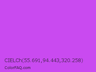 CIELCh 55.691,94.443,320.258 Color is a light purple color and the nearest color is Medium Orchid #ba55d3. Hex code #c94af0 and RGB value is rgb(201,74,240). In RGB color space, this color is composed of 79% red, 29% green, 94% blue, In CMYK color space, this color is composed of 16% cyan, 69% magenta, 0% yellow , 6% black , In HSL color space, this color has a hue angle of 286° , 85% saturation and 62% lightness.