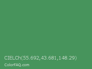 CIELCh 55.692,43.681,148.29 Color is a normal green color and the nearest color is Fruit Salad #4f9d5d. Hex code #47955c and RGB value is rgb(71,149,92). In RGB color space, this color is composed of 28% red, 58% green, 36% blue, In CMYK color space, this color is composed of 52% cyan, 0% magenta, 38% yellow , 42% black , In HSL color space, this color has a hue angle of 136° , 35% saturation and 43% lightness.