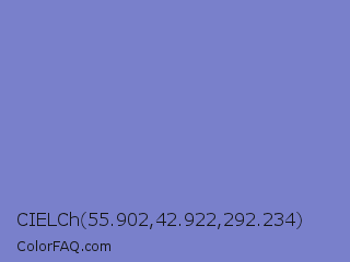 CIELCh 55.902,42.922,292.234 Color is a light blue color and the nearest color is Moody Blue #7f76d3. Hex code #7980cb and RGB value is rgb(121,128,203). In RGB color space, this color is composed of 47% red, 50% green, 80% blue, In CMYK color space, this color is composed of 40% cyan, 37% magenta, 0% yellow , 20% black , In HSL color space, this color has a hue angle of 235° , 44% saturation and 64% lightness.