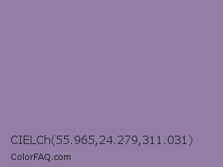 CIELCh 55.965,24.279,311.031 Color is a normal purple color and the nearest color is Lavender Purple #967bb6. Hex code #937ea6 and RGB value is rgb(147,126,166). In RGB color space, this color is composed of 58% red, 49% green, 65% blue, In CMYK color space, this color is composed of 11% cyan, 24% magenta, 0% yellow , 35% black , In HSL color space, this color has a hue angle of 272° , 18% saturation and 57% lightness.
