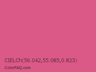 CIELCh 56.042,55.085,0.823 Color is a normal rose color and the nearest color is Blush #de5d83. Hex code #db5987 and RGB value is rgb(219,89,135). In RGB color space, this color is composed of 86% red, 35% green, 53% blue, In CMYK color space, this color is composed of 0% cyan, 59% magenta, 38% yellow , 14% black , In HSL color space, this color has a hue angle of 339° , 64% saturation and 60% lightness.