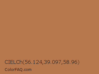 CIELCh 56.124,39.097,58.96 Color is a normal orange color and the nearest color is Brown Sugar #af6e4d. Hex code #b7784d and RGB value is rgb(183,120,77). In RGB color space, this color is composed of 72% red, 47% green, 30% blue, In CMYK color space, this color is composed of 0% cyan, 34% magenta, 58% yellow , 28% black , In HSL color space, this color has a hue angle of 24° , 42% saturation and 51% lightness.