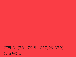 CIELCh 56.179,81.057,29.959 Color is a light red color and the nearest color is Red Salsa #fd3a4a. Hex code #fa3d45 and RGB value is rgb(250,61,69). In RGB color space, this color is composed of 98% red, 24% green, 27% blue, In CMYK color space, this color is composed of 0% cyan, 76% magenta, 72% yellow , 2% black , In HSL color space, this color has a hue angle of 357° , 95% saturation and 61% lightness.