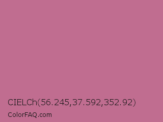 CIELCh 56.245,37.592,352.92 Color is a normal rose color and the nearest color is Turkish Rose #b57281. Hex code #c06d90 and RGB value is rgb(192,109,144). In RGB color space, this color is composed of 75% red, 43% green, 56% blue, In CMYK color space, this color is composed of 0% cyan, 43% magenta, 25% yellow , 25% black , In HSL color space, this color has a hue angle of 335° , 40% saturation and 59% lightness.