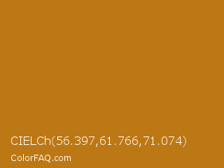 CIELCh 56.397,61.766,71.074 Color is a normal orange color and the nearest color is Bourbon #ba6f1e. Hex code #bd7816 and RGB value is rgb(189,120,22). In RGB color space, this color is composed of 74% red, 47% green, 9% blue, In CMYK color space, this color is composed of 0% cyan, 37% magenta, 88% yellow , 26% black , In HSL color space, this color has a hue angle of 35° , 79% saturation and 41% lightness.