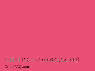 CIELCh 56.577,63.823,12.398 Color is a light red color and the nearest color is Dark Pink #e75480. Hex code #eb4f73 and RGB value is rgb(235,79,115). In RGB color space, this color is composed of 92% red, 31% green, 45% blue, In CMYK color space, this color is composed of 0% cyan, 66% magenta, 51% yellow , 8% black , In HSL color space, this color has a hue angle of 346° , 80% saturation and 62% lightness.