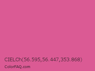 CIELCh 56.595,56.447,353.868 Color is a light rose color and the nearest color is Raspberry Pink #e25098. Hex code #db5a94 and RGB value is rgb(219,90,148). In RGB color space, this color is composed of 86% red, 35% green, 58% blue, In CMYK color space, this color is composed of 0% cyan, 59% magenta, 32% yellow , 14% black , In HSL color space, this color has a hue angle of 333° , 64% saturation and 61% lightness.