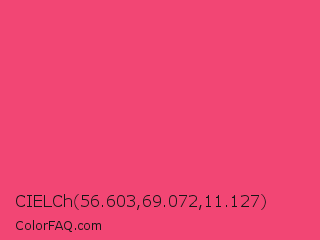 CIELCh 56.603,69.072,11.127 Color is a light rose color and the nearest color is Infra Red #ff496c. Hex code #f24674 and RGB value is rgb(242,70,116). In RGB color space, this color is composed of 95% red, 27% green, 45% blue, In CMYK color space, this color is composed of 0% cyan, 71% magenta, 52% yellow , 5% black , In HSL color space, this color has a hue angle of 344° , 87% saturation and 61% lightness.
