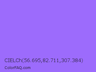 CIELCh 56.695,82.711,307.384 Color is a light indigo color and the nearest color is Navy Purple #9457eb. Hex code #9c6bfc and RGB value is rgb(156,107,252). In RGB color space, this color is composed of 61% red, 42% green, 99% blue, In CMYK color space, this color is composed of 38% cyan, 58% magenta, 0% yellow , 1% black , In HSL color space, this color has a hue angle of 260° , 96% saturation and 70% lightness.