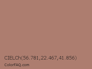 CIELCh 56.781,22.467,41.856 Color is a normal red color and the nearest color is Burnished Brown #a17a74. Hex code #ad7d6f and RGB value is rgb(173,125,111). In RGB color space, this color is composed of 68% red, 49% green, 44% blue, In CMYK color space, this color is composed of 0% cyan, 28% magenta, 36% yellow , 32% black , In HSL color space, this color has a hue angle of 14° , 27% saturation and 56% lightness.