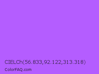 CIELCh 56.833,92.122,313.318 Color is a light purple color and the nearest color is Navy Purple #9457eb. Hex code #b45dff and RGB value is rgb(180,93,255). In RGB color space, this color is composed of 71% red, 36% green, 100% blue, In CMYK color space, this color is composed of 29% cyan, 64% magenta, 0% yellow , 0% black , In HSL color space, this color has a hue angle of 272° , 100% saturation and 68% lightness.
