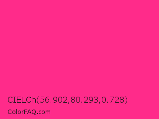 CIELCh 56.902,80.293,0.728 Color is a normal rose color and the nearest color is Wild Strawberry Crayola #ff3399. Hex code #ff2b8a and RGB value is rgb(255,43,138). In RGB color space, this color is composed of 100% red, 17% green, 54% blue, In CMYK color space, this color is composed of 0% cyan, 83% magenta, 46% yellow , 0% black , In HSL color space, this color has a hue angle of 333° , 100% saturation and 58% lightness.