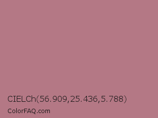 CIELCh 56.909,25.436,5.788 Color is a normal red color and the nearest color is Turkish Rose #b57281. Hex code #b47885 and RGB value is rgb(180,120,133). In RGB color space, this color is composed of 71% red, 47% green, 52% blue, In CMYK color space, this color is composed of 0% cyan, 33% magenta, 26% yellow , 29% black , In HSL color space, this color has a hue angle of 347° , 29% saturation and 59% lightness.