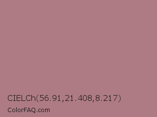 CIELCh 56.91,21.408,8.217 Color is a normal red color and the nearest color is Turkish Rose #b57281. Hex code #ae7b84 and RGB value is rgb(174,123,132). In RGB color space, this color is composed of 68% red, 48% green, 52% blue, In CMYK color space, this color is composed of 0% cyan, 29% magenta, 24% yellow , 32% black , In HSL color space, this color has a hue angle of 349° , 24% saturation and 58% lightness.