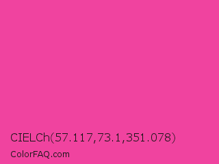 CIELCh 57.117,73.1,351.078 Color is a normal rose color and the nearest color is Rose Bonbon #f9429e. Hex code #f0439f and RGB value is rgb(240,67,159). In RGB color space, this color is composed of 94% red, 26% green, 62% blue, In CMYK color space, this color is composed of 0% cyan, 72% magenta, 34% yellow , 6% black , In HSL color space, this color has a hue angle of 328° , 85% saturation and 60% lightness.