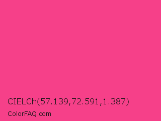 CIELCh 57.139,72.591,1.387 Color is a light rose color and the nearest color is Violet Red #f7468a. Hex code #f64089 and RGB value is rgb(246,64,137). In RGB color space, this color is composed of 96% red, 25% green, 54% blue, In CMYK color space, this color is composed of 0% cyan, 74% magenta, 44% yellow , 4% black , In HSL color space, this color has a hue angle of 336° , 91% saturation and 61% lightness.