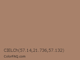 CIELCh 57.14,21.736,57.132 Color is a normal orange color and the nearest color is Beaver #9f8170. Hex code #a8816a and RGB value is rgb(168,129,106). In RGB color space, this color is composed of 66% red, 51% green, 42% blue, In CMYK color space, this color is composed of 0% cyan, 23% magenta, 37% yellow , 34% black , In HSL color space, this color has a hue angle of 22° , 26% saturation and 54% lightness.