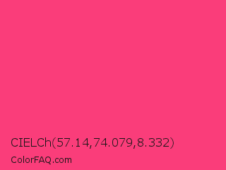 CIELCh 57.14,74.079,8.332 Color is a light rose color and the nearest color is Sasquatch Socks #ff4681. Hex code #fa3d7a and RGB value is rgb(250,61,122). In RGB color space, this color is composed of 98% red, 24% green, 48% blue, In CMYK color space, this color is composed of 0% cyan, 76% magenta, 51% yellow , 2% black , In HSL color space, this color has a hue angle of 341° , 95% saturation and 61% lightness.