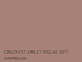 CIELCh 57.188,17.002,42.207 Color is a normal red color and the nearest color is Pharlap #a3807b. Hex code #a68176 and RGB value is rgb(166,129,118). In RGB color space, this color is composed of 65% red, 51% green, 46% blue, In CMYK color space, this color is composed of 0% cyan, 22% magenta, 29% yellow , 35% black , In HSL color space, this color has a hue angle of 14° , 21% saturation and 56% lightness.