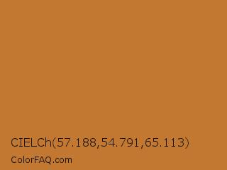 CIELCh 57.188,54.791,65.113 Color is a normal orange color and the nearest color is Copper #b87333. Hex code #c27830 and RGB value is rgb(194,120,48). In RGB color space, this color is composed of 76% red, 47% green, 19% blue, In CMYK color space, this color is composed of 0% cyan, 38% magenta, 75% yellow , 24% black , In HSL color space, this color has a hue angle of 30° , 60% saturation and 47% lightness.