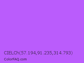 CIELCh 57.194,91.235,314.793 Color is a light purple color and the nearest color is Medium Orchid #ba55d3. Hex code #ba5cfc and RGB value is rgb(186,92,252). In RGB color space, this color is composed of 73% red, 36% green, 99% blue, In CMYK color space, this color is composed of 26% cyan, 63% magenta, 0% yellow , 1% black , In HSL color space, this color has a hue angle of 275° , 96% saturation and 67% lightness.