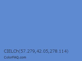 CIELCh 57.279,42.05,278.114 Color is a normal blue color and the nearest color is Danube #6093d1. Hex code #5e8ad2 and RGB value is rgb(94,138,210). In RGB color space, this color is composed of 37% red, 54% green, 82% blue, In CMYK color space, this color is composed of 55% cyan, 34% magenta, 0% yellow , 18% black , In HSL color space, this color has a hue angle of 217° , 56% saturation and 60% lightness.