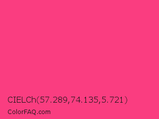 CIELCh 57.289,74.135,5.721 Color is a light rose color and the nearest color is Sasquatch Socks #ff4681. Hex code #fa3d80 and RGB value is rgb(250,61,128). In RGB color space, this color is composed of 98% red, 24% green, 50% blue, In CMYK color space, this color is composed of 0% cyan, 76% magenta, 49% yellow , 2% black , In HSL color space, this color has a hue angle of 339° , 95% saturation and 61% lightness.