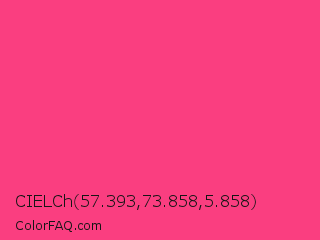CIELCh 57.393,73.858,5.858 Color is a light rose color and the nearest color is Sasquatch Socks #ff4681. Hex code #fa3e80 and RGB value is rgb(250,62,128). In RGB color space, this color is composed of 98% red, 24% green, 50% blue, In CMYK color space, this color is composed of 0% cyan, 75% magenta, 49% yellow , 2% black , In HSL color space, this color has a hue angle of 339° , 95% saturation and 61% lightness.