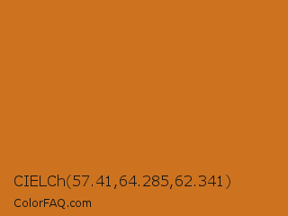CIELCh 57.41,64.285,62.341 Color is a normal orange color and the nearest color is Ochre #cc7722. Hex code #cd7320 and RGB value is rgb(205,115,32). In RGB color space, this color is composed of 80% red, 45% green, 13% blue, In CMYK color space, this color is composed of 0% cyan, 44% magenta, 84% yellow , 20% black , In HSL color space, this color has a hue angle of 29° , 73% saturation and 46% lightness.
