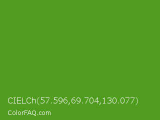 CIELCh 57.596,69.704,130.077 Color is a normal green color and the nearest color is Vida Loca #549019. Hex code #4f9c1f and RGB value is rgb(79,156,31). In RGB color space, this color is composed of 31% red, 61% green, 12% blue, In CMYK color space, this color is composed of 49% cyan, 0% magenta, 80% yellow , 39% black , In HSL color space, this color has a hue angle of 97° , 67% saturation and 37% lightness.