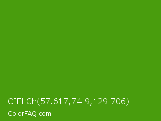 CIELCh 57.617,74.9,129.706 Color is a normal green color and the nearest color is Vida Loca #549019. Hex code #499d0d and RGB value is rgb(73,157,13). In RGB color space, this color is composed of 29% red, 62% green, 5% blue, In CMYK color space, this color is composed of 54% cyan, 0% magenta, 92% yellow , 38% black , In HSL color space, this color has a hue angle of 95° , 85% saturation and 33% lightness.