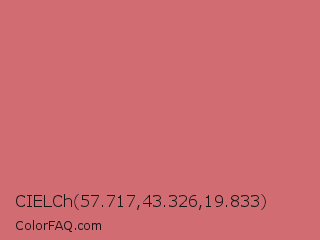CIELCh 57.717,43.326,19.833 Color is a light red color and the nearest color is Fuzzy Wuzzy #cc6666. Hex code #d26c73 and RGB value is rgb(210,108,115). In RGB color space, this color is composed of 82% red, 42% green, 45% blue, In CMYK color space, this color is composed of 0% cyan, 49% magenta, 45% yellow , 18% black , In HSL color space, this color has a hue angle of 356° , 53% saturation and 62% lightness.