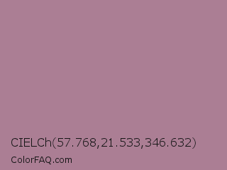 CIELCh 57.768,21.533,346.632 Color is a normal rose color and the nearest color is English Lavender #b48395. Hex code #ab7e94 and RGB value is rgb(171,126,148). In RGB color space, this color is composed of 67% red, 49% green, 58% blue, In CMYK color space, this color is composed of 0% cyan, 26% magenta, 13% yellow , 33% black , In HSL color space, this color has a hue angle of 331° , 21% saturation and 58% lightness.