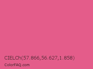 CIELCh 57.866,56.627,1.858 Color is a light rose color and the nearest color is Blush #de5d83. Hex code #e35c8a and RGB value is rgb(227,92,138). In RGB color space, this color is composed of 89% red, 36% green, 54% blue, In CMYK color space, this color is composed of 0% cyan, 59% magenta, 39% yellow , 11% black , In HSL color space, this color has a hue angle of 340° , 71% saturation and 63% lightness.