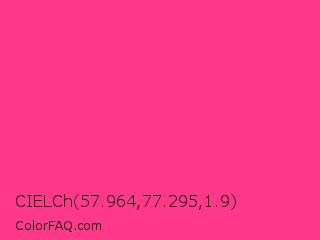 CIELCh 57.964,77.295,1.9 Color is a light rose color and the nearest color is French Fuchsia #fd3f92. Hex code #ff388a and RGB value is rgb(255,56,138). In RGB color space, this color is composed of 100% red, 22% green, 54% blue, In CMYK color space, this color is composed of 0% cyan, 78% magenta, 46% yellow , 0% black , In HSL color space, this color has a hue angle of 335° , 100% saturation and 61% lightness.