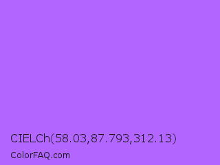 CIELCh 58.03,87.793,312.13 Color is a light violet color and the nearest color is Navy Purple #9457eb. Hex code #b265ff and RGB value is rgb(178,101,255). In RGB color space, this color is composed of 70% red, 40% green, 100% blue, In CMYK color space, this color is composed of 30% cyan, 60% magenta, 0% yellow , 0% black , In HSL color space, this color has a hue angle of 270° , 100% saturation and 70% lightness.