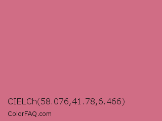 CIELCh 58.076,41.78,6.466 Color is a light red color and the nearest color is Cinnamon Satin #cd607e. Hex code #d06d85 and RGB value is rgb(208,109,133). In RGB color space, this color is composed of 82% red, 43% green, 52% blue, In CMYK color space, this color is composed of 0% cyan, 48% magenta, 36% yellow , 18% black , In HSL color space, this color has a hue angle of 345° , 51% saturation and 62% lightness.