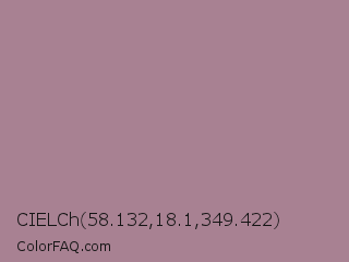 CIELCh 58.132,18.1,349.422 Color is a normal rose color and the nearest color is English Lavender #b48395. Hex code #a88192 and RGB value is rgb(168,129,146). In RGB color space, this color is composed of 66% red, 51% green, 57% blue, In CMYK color space, this color is composed of 0% cyan, 23% magenta, 13% yellow , 34% black , In HSL color space, this color has a hue angle of 334° , 18% saturation and 58% lightness.