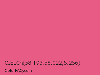CIELCh 58.193,58.022,5.256 Color is a light rose color and the nearest color is Dark Pink #e75480. Hex code #e75b85 and RGB value is rgb(231,91,133). In RGB color space, this color is composed of 91% red, 36% green, 52% blue, In CMYK color space, this color is composed of 0% cyan, 61% magenta, 42% yellow , 9% black , In HSL color space, this color has a hue angle of 342° , 74% saturation and 63% lightness.