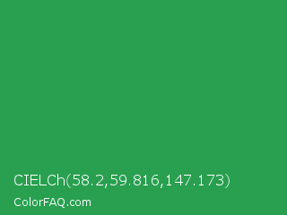 CIELCh 58.2,59.816,147.173 Color is a normal green color and the nearest color is Sea Green #2e8b57. Hex code #28a050 and RGB value is rgb(40,160,80). In RGB color space, this color is composed of 16% red, 63% green, 31% blue, In CMYK color space, this color is composed of 75% cyan, 0% magenta, 50% yellow , 37% black , In HSL color space, this color has a hue angle of 140° , 60% saturation and 39% lightness.
