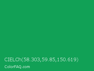 CIELCh 58.303,59.85,150.619 Color is a normal green color and the nearest color is Green Pigment #00a550. Hex code #11a156 and RGB value is rgb(17,161,86). In RGB color space, this color is composed of 7% red, 63% green, 34% blue, In CMYK color space, this color is composed of 89% cyan, 0% magenta, 47% yellow , 37% black , In HSL color space, this color has a hue angle of 149° , 81% saturation and 35% lightness.