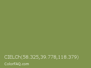 CIELCh 58.325,39.778,118.379 Color is a normal lime color and the nearest color is Moss Green #8a9a5b. Hex code #80944d and RGB value is rgb(128,148,77). In RGB color space, this color is composed of 50% red, 58% green, 30% blue, In CMYK color space, this color is composed of 14% cyan, 0% magenta, 48% yellow , 42% black , In HSL color space, this color has a hue angle of 77° , 32% saturation and 44% lightness.
