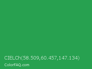 CIELCh 58.509,60.457,147.134 Color is a normal green color and the nearest color is Sea Green #2e8b57. Hex code #27a150 and RGB value is rgb(39,161,80). In RGB color space, this color is composed of 15% red, 63% green, 31% blue, In CMYK color space, this color is composed of 76% cyan, 0% magenta, 50% yellow , 37% black , In HSL color space, this color has a hue angle of 140° , 61% saturation and 39% lightness.