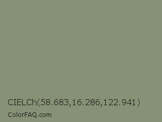 CIELCh 58.683,16.286,122.941 Color is a normal green color and the nearest color is Battleship Gray #828f72. Hex code #879175 and RGB value is rgb(135,145,117). In RGB color space, this color is composed of 53% red, 57% green, 46% blue, In CMYK color space, this color is composed of 7% cyan, 0% magenta, 19% yellow , 43% black , In HSL color space, this color has a hue angle of 81° , 11% saturation and 51% lightness.