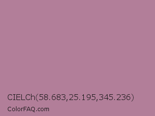 CIELCh 58.683,25.195,345.236 Color is a normal rose color and the nearest color is Bouquet #ae809e. Hex code #b27e99 and RGB value is rgb(178,126,153). In RGB color space, this color is composed of 70% red, 49% green, 60% blue, In CMYK color space, this color is composed of 0% cyan, 29% magenta, 14% yellow , 30% black , In HSL color space, this color has a hue angle of 329° , 25% saturation and 60% lightness.