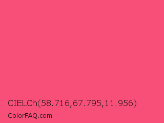 CIELCh 58.716,67.795,11.956 Color is a light red color and the nearest color is Fiery Rose #ff5470. Hex code #f74f78 and RGB value is rgb(247,79,120). In RGB color space, this color is composed of 97% red, 31% green, 47% blue, In CMYK color space, this color is composed of 0% cyan, 68% magenta, 51% yellow , 3% black , In HSL color space, this color has a hue angle of 345° , 91% saturation and 64% lightness.